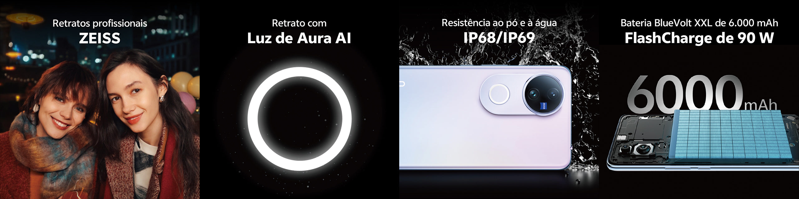 Ótica da ZEISS com câmaras de alta resolução de 50 MP em todas as lentes